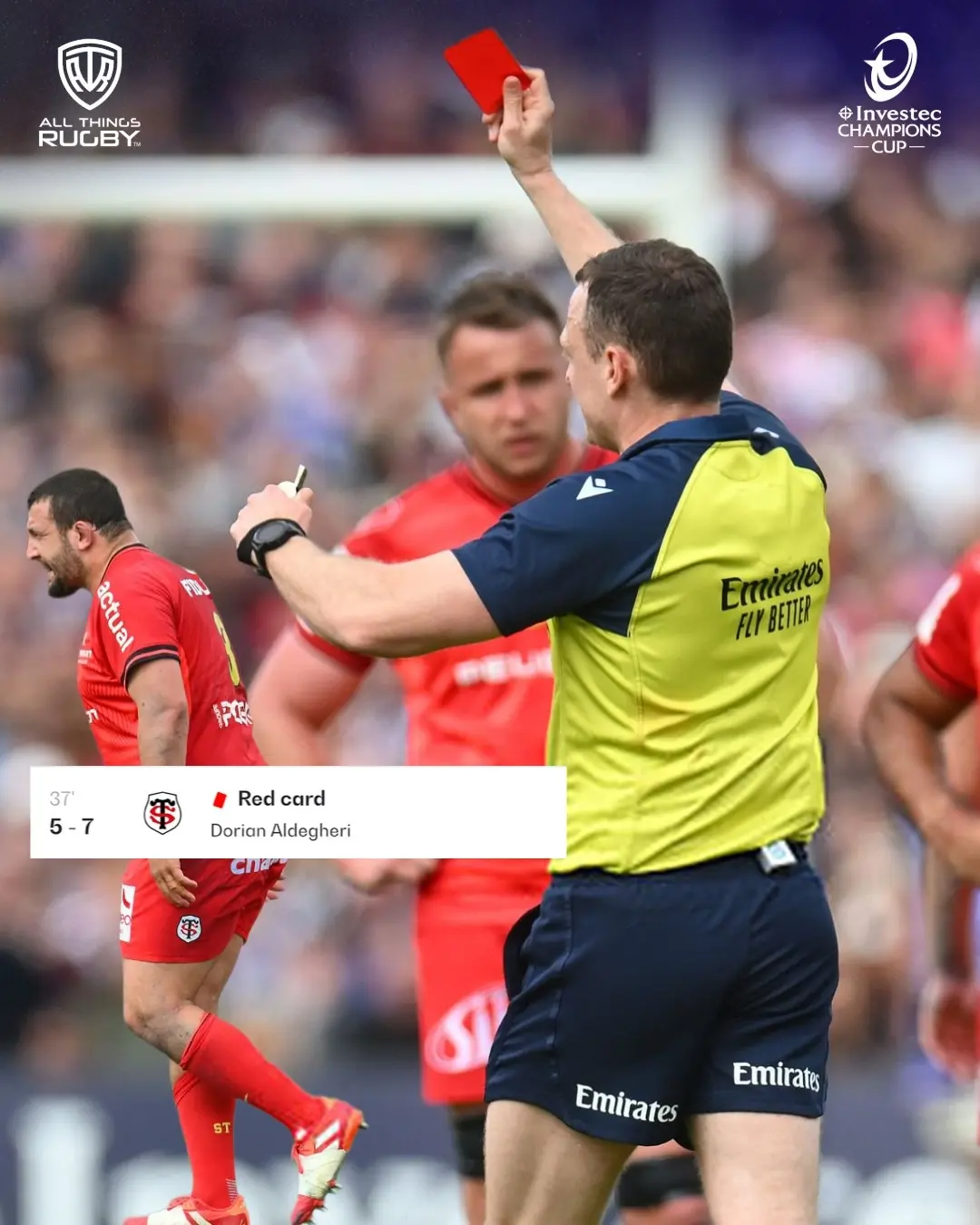 Quelques jours plus tôt, tout semblait pourtant clair pour le grand public. Une élimination brutale en quart de finale de la Coupe des Champions face à l’Union Bordeaux Bègles. Un carton rouge controversé pour Dorian Aldegheri. Une suspension de trois matchs qui avait enflammé les débats, divisant supporters et consultants. Dans les tribunes comme sur les plateaux télé, le verdict semblait simple : discipline défaillante, pression mal gérée, équipe en perte de contrôle.